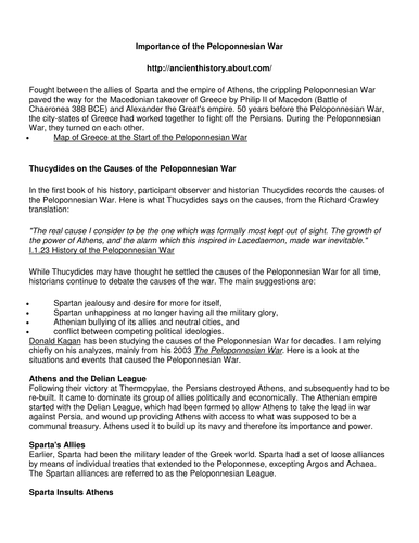 For the Spartans, peloponnesian war essay, winning the Peloponnesian War was a catastrophe that culminated in the atrophy of the Spartan system as well as the perpetual irrelevancy. The Peloponnesian War Name Course Tutor Date The Peloponnesian war which was fought in BCE happened in ancient Greece and was between two city states, Athens and Sparta. Athens had an alliance with coastal states and most of the island states that boarded the shores of the Aegean Sea to the north and eastern side.